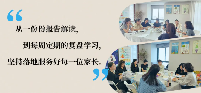 从一场场公益沙龙,到初、中、高级课程的系统铺设;从一份份报告解读,到每周定期的复盘学习,她和团队们坚持“落地服务好每一位家长”。